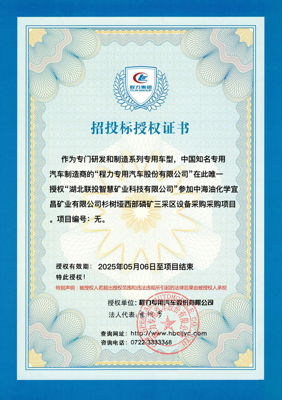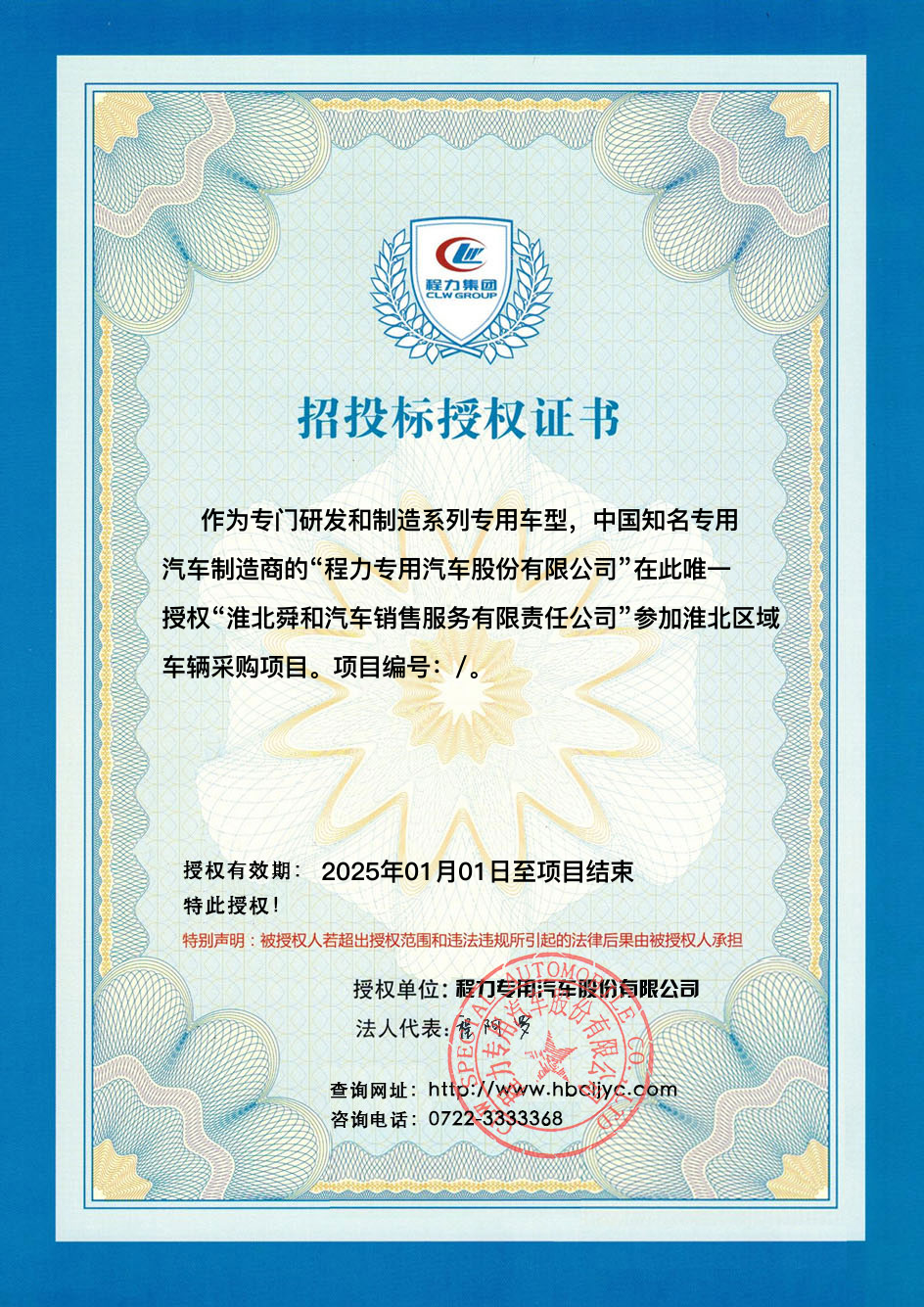 | 省份 | 投标项目 | 授权时间 | 被授权人 | 标段号 | 采购车辆 | 登记人 | 查看下载授权证书 |
